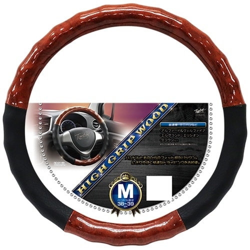 Mサイズの木目調ハンドルカバーです。握りやすく快適で、大型車種にも適合します。 |