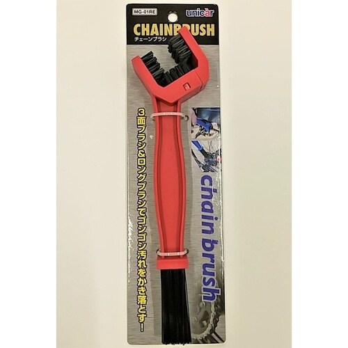 チェーンやスプロケットの汚れを落とす3面ブラシです。強く磨きすぎると傷の恐れがあるため注意が必要です。 |