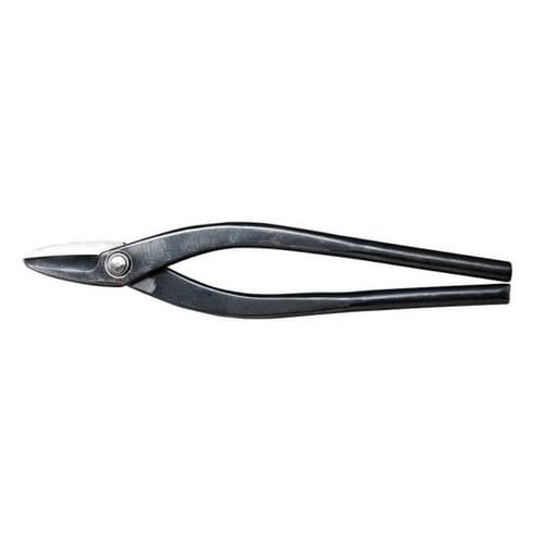 小柳機工製の板金厚物切箸。直刃仕様で直線切りに適し、エアーソー等による粗切後に既存や交換パネルの仕上げ切りに使用される。精度の高い切断が可能で、自動車板金作業に広く利用される。 |