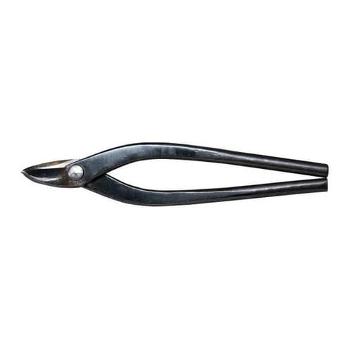 小柳機工製の板金厚物切箸。エグリ刃仕様で曲線切りに適し、カット工法時にエアーソー等の粗切後、既存や交換パネルの仕上げ切りに使用される。精度の高い切断が可能で、自動車板金作業に広く利用される。 |