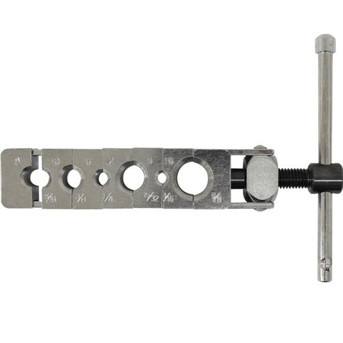 銅管やアルミ管の端部を拡げるフレア加工を行うための工具で、冷媒配管などの接続作業に必須。 |