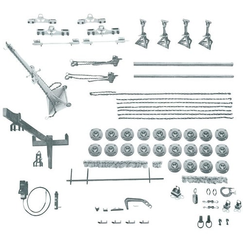強力な引きには油圧、軽い引きにはレバーブロックを併用できる汎用型高能率セット。アンカーベースを主体とした構成で、鈑金・フレーム修正作業に幅広く対応するプロ向けセット。 |