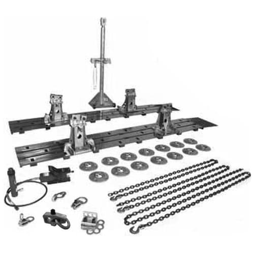 従来より定評の車体固定装置を首振りタイプに統一し、固定スタンドの軽量化を実現した床張タイプの基本セット。小破?中破の車体修正に適し、幅広い治具構成で高い作業効率を発揮する。 |