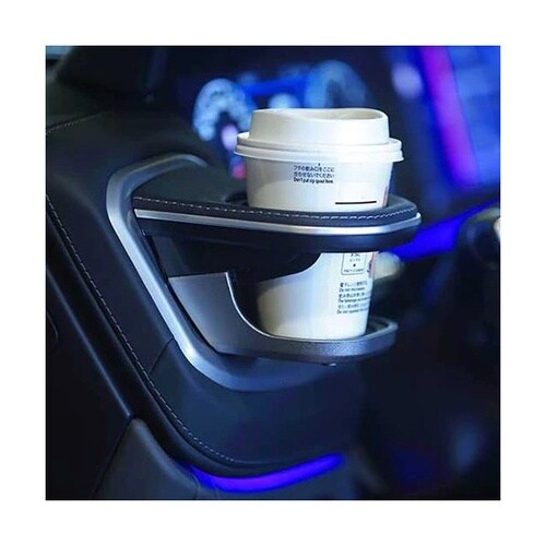 Gクラス専用の本革カップホルダー。金属クリップでしっかり固定でき、US Lサイズにも対応。内装に馴染む高品質デザイン。 |