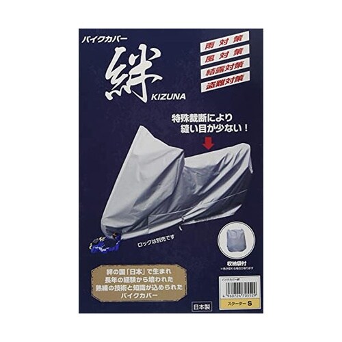 長年の技術を生かしたバイクカバーです。結露対策の通気機能や雨漏れを防ぐ裁断を採用し、大型ロックに対応した穴も備えています。 |