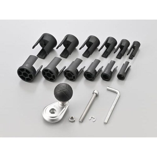 アルミ削り出しのマルチバーで、車体の様々な場所に取り付け可能です。M6/M8ボルト穴を備えています。 |