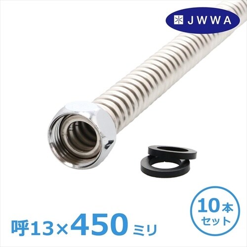 長さ450ミリ・呼13のステンレス製(SUS304)フレキパイプ10本入りです。 |