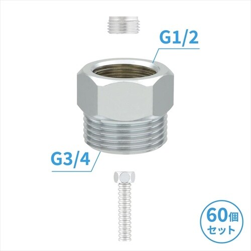 給湯器配管などに便利な異径ニップル60個入りです。工事業者様(法人)向けの複数売り商品です。 |
