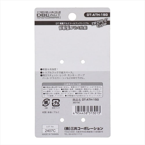 三共コーポレーション DT−ATH−15G 軽量アルミツールフック #360195 A0AC-3552