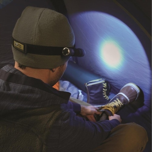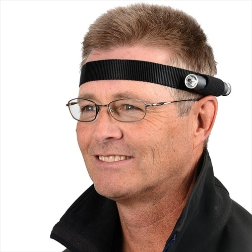 ナイトアイズの第一号商品。フラッシュライトを頭部に取り付けて、両手を自由に。 |