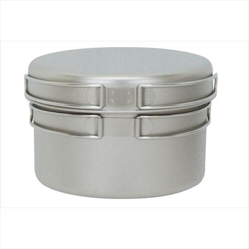 チタン製の深型鍋とフライパンのセット。ネットケース付です。 |