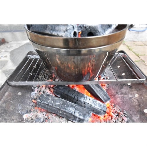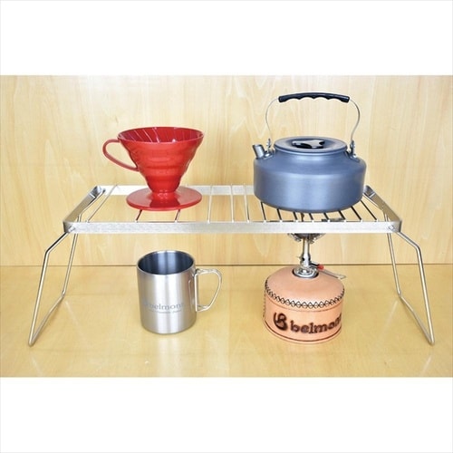 ドリッパースタンドとして使えるロング五徳。各メーカーのドリッパーが使えるようグリル部分の間隔を変えてあります。脚を取り外してかまどとしてや焚き火台の上でも使えます。 |