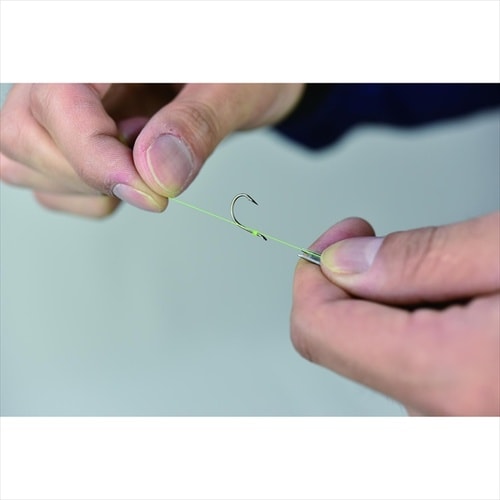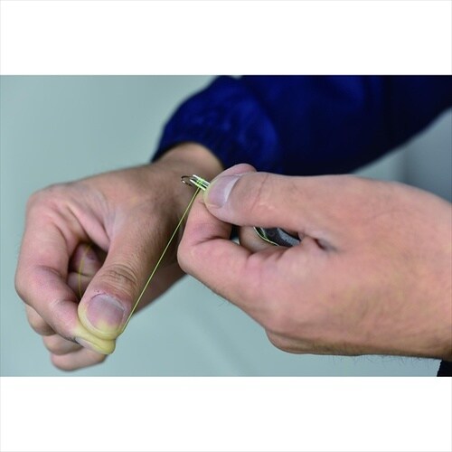 ネイルノットがすばやく出来るコンパクトなツール。本品でフックを挟んだままクルクル巻いてライン先端をくぐらせたら本品を抜いて締めるだけ。 |