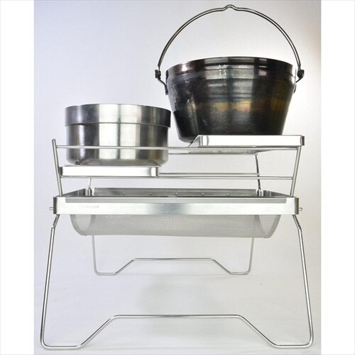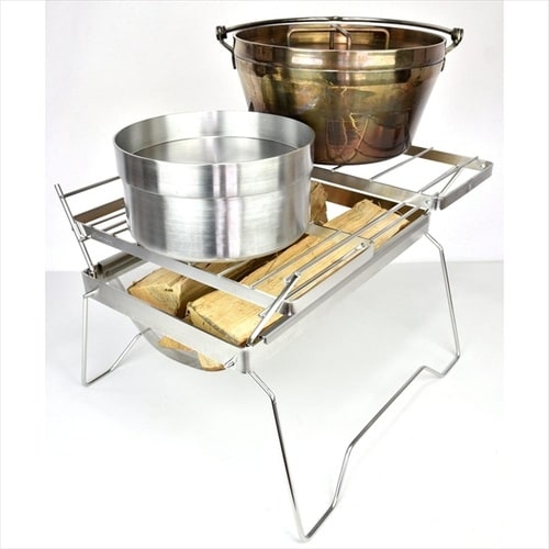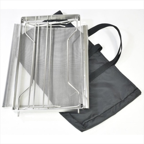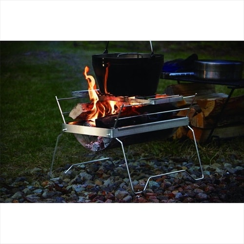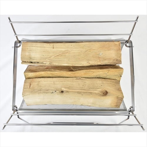 軽量で様々な使い方ができる。重量は2.2kgと軽量ながらワイヤーシェルフをフレーム左右に差し込むことで、薪の乾燥や当社製の五徳を使用することで調理なども可能。 |
