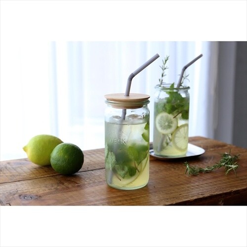 スッとした形でボトル型のようなSTRAIGHT 340mlのドリンクボトルとストローが入る穴あきふたのセットです。 |
