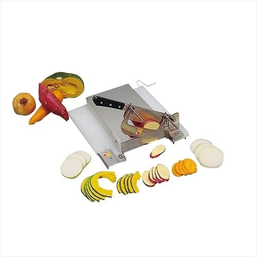 さつまいも、人参、大根、かぼちゃ、玉ねぎなどの厚切のスライスに最適です。カットガイドにより厚さが一定してカットできます。調整ネジにより簡単に調整可能です。 |