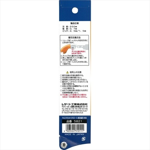 穴を開けた所から切り進める事の出来る、先端目立て付きの鋸。 |