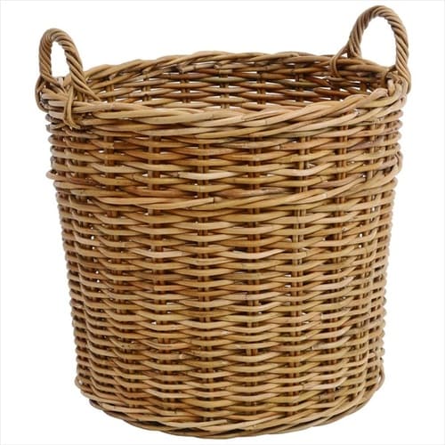 サイズ:φ400xh360mm/持ち手h65mm | 素材:皮付きラタン | 単位:1個