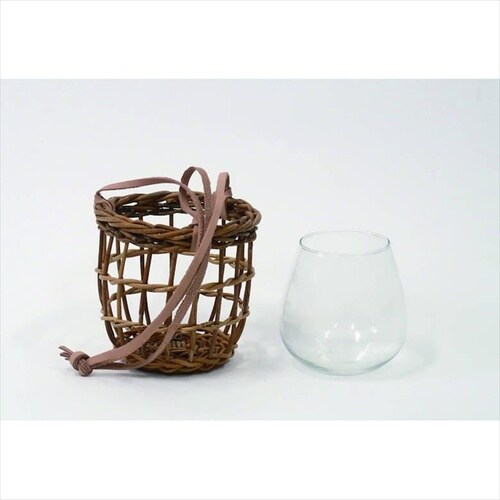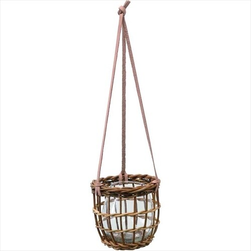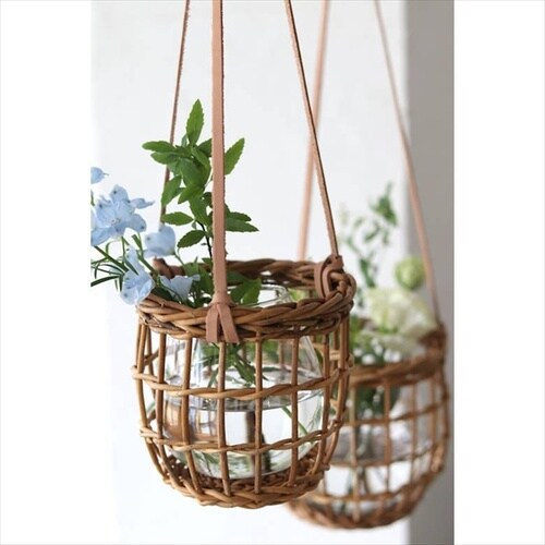 ランダムに編まれた編み目が特徴のハンギングバスケット。 |