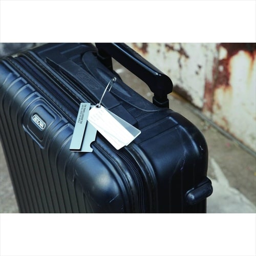アルミ製のシンプルなラゲッジタグ。 |
