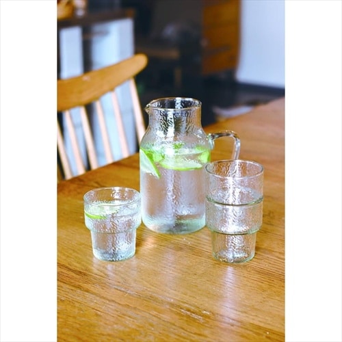花瓶にもなる凹凸のあるテクスチャー入りのガラスピッチャー。 |