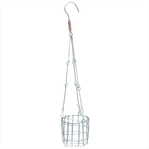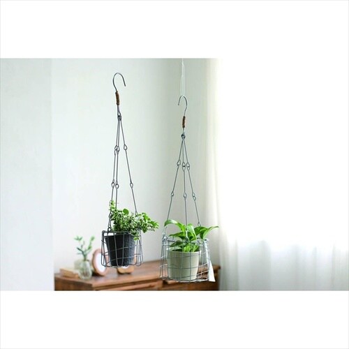 ワイヤーを使ってハンドメイドで編まれたハンギングポットカバー。 |