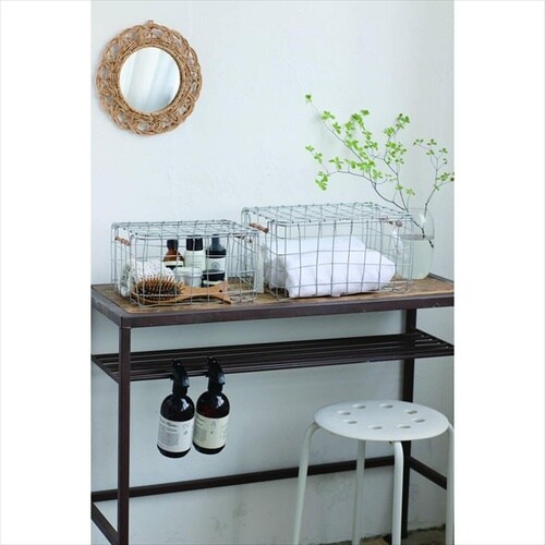 ワイヤーを使ってハンドメイドで編まれたふた付きバスケット。 |