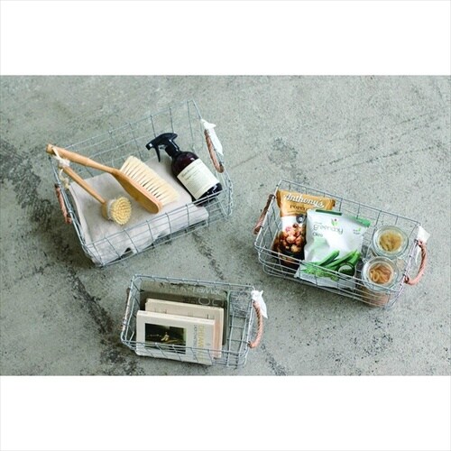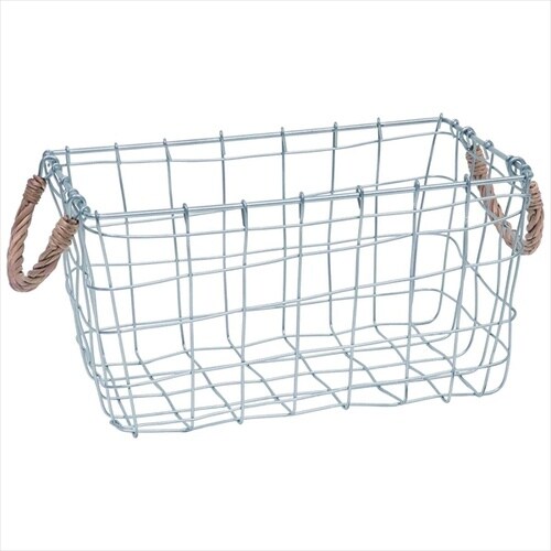 天然素材の柳ハンドルがアクセントになったワイヤーバスケット。 |