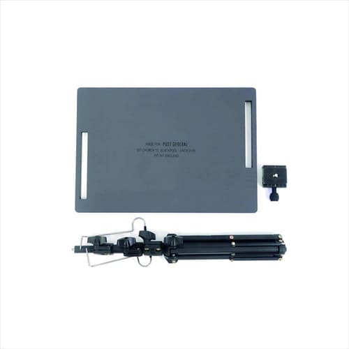 カメラ用の三脚をベースに専用天板をセットできる多機能ギア。 |