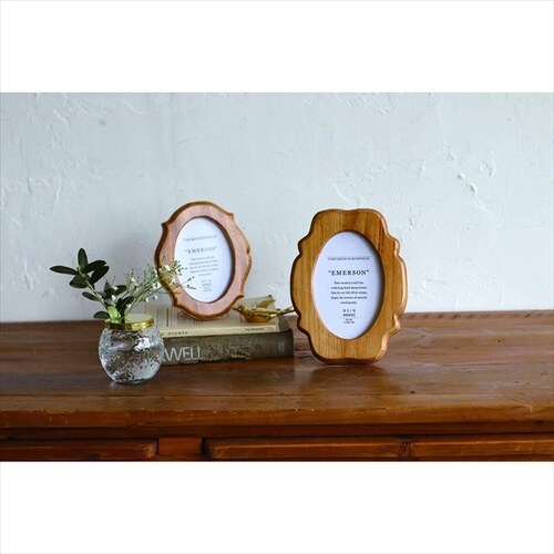 ラウンド型の木製フォトフレーム。 |
