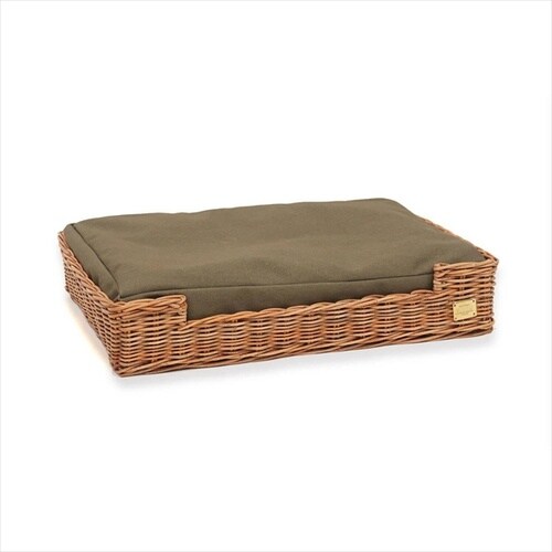 皮付きラタンを使って編まれたハンドメイドのねこベッド。 |