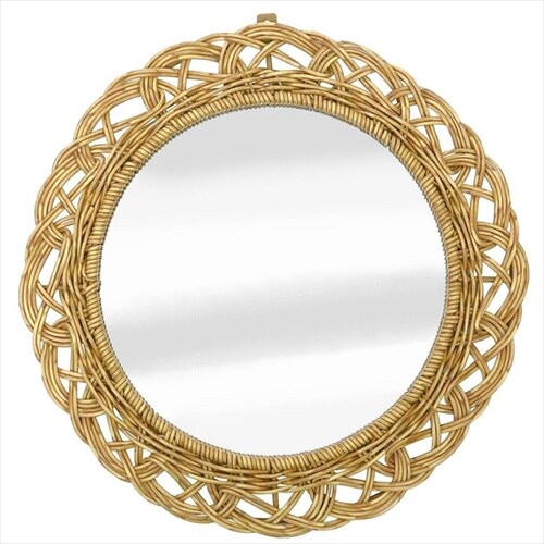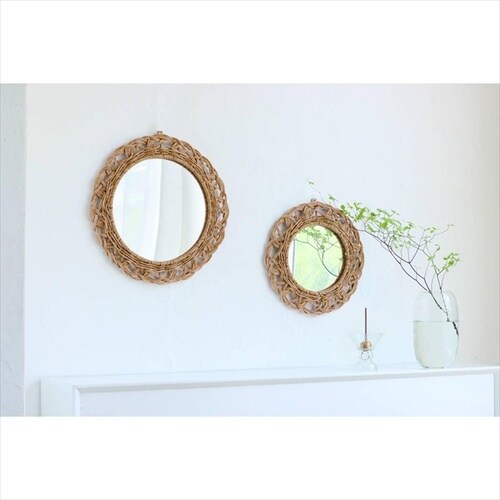 自然な温かみのあるPPラタンで編み上げたラウンド型ミラー。 |