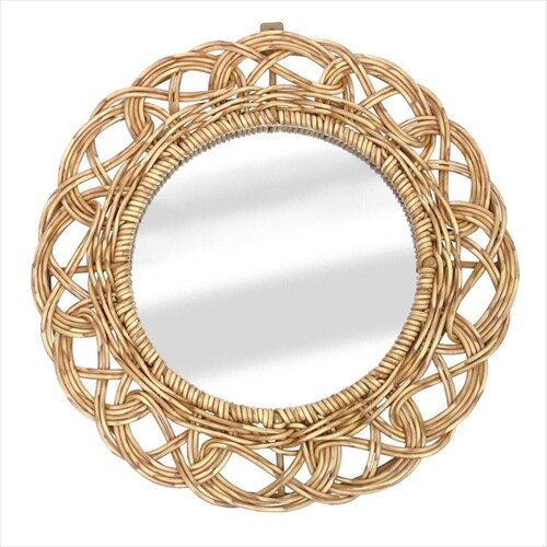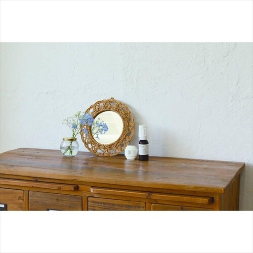 自然な温かみのあるPPラタンで編み上げたラウンド型ミラー。