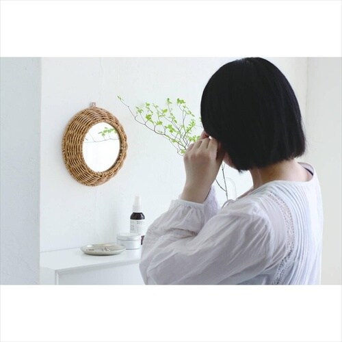 自然な温かみのあるPPラタンで編み上げたラウンド型ミラー。 |