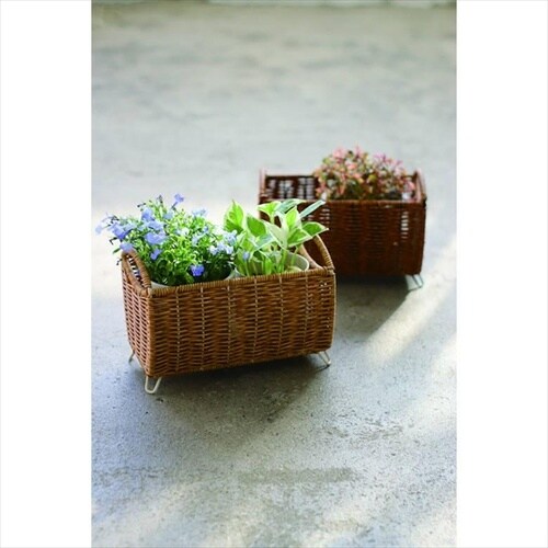 PPラタンで編まれたシンプルなプランタースタンド。水洗いができる、見た目と機能性にこだわった手編みのバスケット。3号鉢が2個入ります。 |