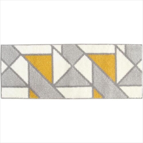 モダンテイストの幾何学模様のキッチンマットグレーとホワイトを基調にイエローカラーがアクセント床暖房対応洗濯機での丸洗いOK |