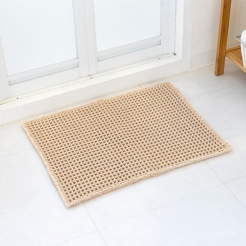 ワッフル織りで踏むのが楽しくなるバスマット凹凸が足裏に気持ちいい、ワッフル織りのマットです。軽くて柔らかく、お洗濯の際も乾きが速いのでお手入れがらくらくです。 |