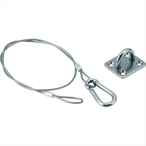 防犯カメラなどの落下防止ワイヤーとして使用します。ワイヤー径:φ2。ワイヤー長さ:520mm。セット内容:玉掛けワイヤー、フック、アイプレート。 |