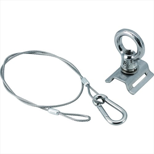 防犯カメラなどの落下防止ワイヤーとして使用します。ワイヤー径:φ2。ワイヤー長さ:520mm。セット内容:玉掛けワイヤー、フック、ポールバンド金具本体。 |