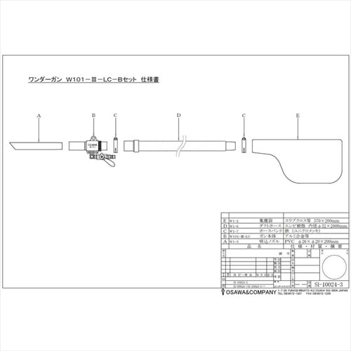 商品サイズ:吸込ノズル/内径φ20x200mm、ダクトホース/内径φ32x2000mm、集塵袋/370mmx200mm。 | 使用ガン:W101−II…