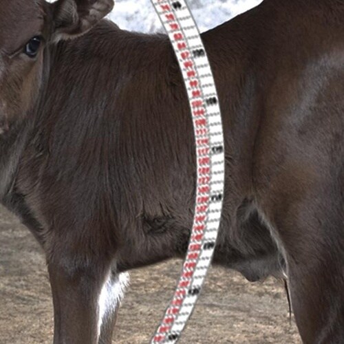 体重計の設備が無くても体重推定が可能に!!牛衡機が無い場所でも巻尺式で胸囲を測る事で簡単に仔牛の体重推測が可能です。 |