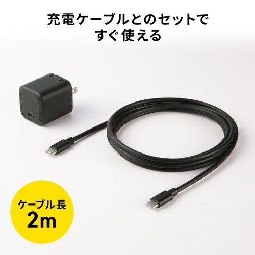 スマートフォンからノートパソコンまで1台で幅広い機器の充電に対応した、USB PD規格45W出力のキューブ型AC充電器。Type−Cケーブル付属。 |