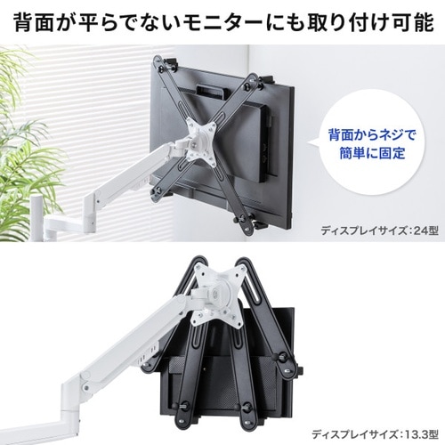 VESA規格取付穴のないモニターを、モニターアームに取り付けられる、モニターマウントホルダー。 |