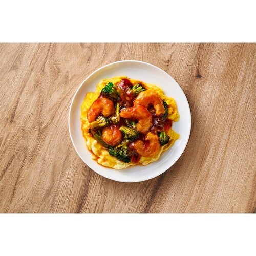 卵を加えてさらにおいしく!【海老のチリソースキット】海老フリッターに、こってりした特製チリ風味ソースが絡みご飯が進む一品です。とろとろ卵を加えてさらにリッチに! |