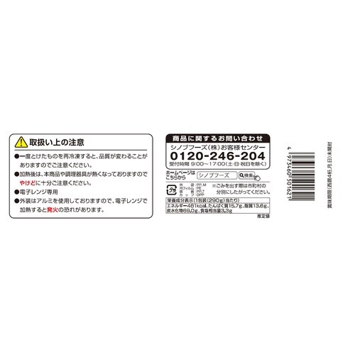 | 注意事項 | ※外袋ごとレンジ不可。 |