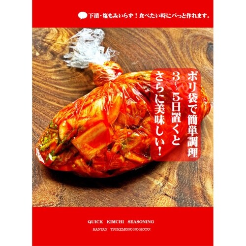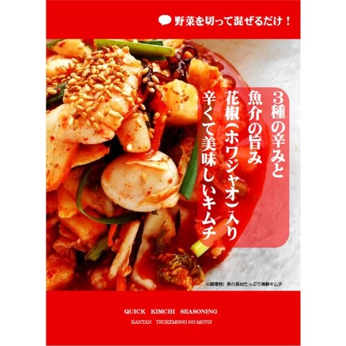 本格辛口タイプの粉末キムチの素です。キムチ漬、キムチ鍋、豚キムチなど様々な料理に使用できます。粉末タイプなので、野菜に絡みやすく、お好みの漬け加減に調整可能です。 |