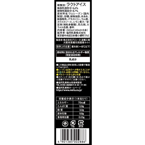 香り豊かなラム酒に漬け込んだレーズンを刻みアイスに混ぜ込みました。ラムレーズンは大きめにカットすることで食べたときのじゅわっとした食感とレーズンから染み出るラム酒の味わいをお楽しみいただけます。 |