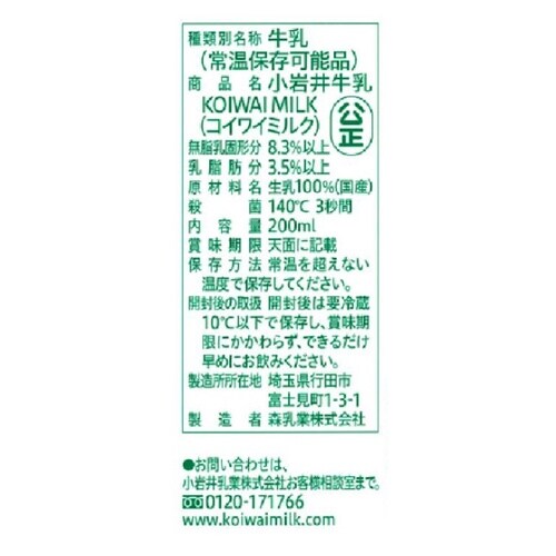 小岩井乳業 小岩井 牛乳 KOIWAI MILK 200ml×24個