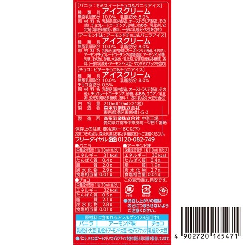 | 注意事項 | ※バニラチョコはアーモンドマカダミアナッツを含む製品と同じ設備で製造しています。 |