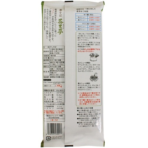 上質抹茶を贅沢に使った、コシがあり、コシがもつ茶そばです。 |